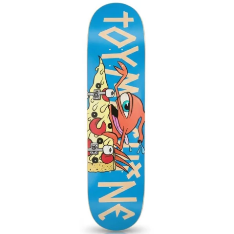 Shape Toy Machine Maple Pizza Monster, fabricado com 7 lâmina de maple canadense mais duráveis e resistentes, colado com resina epóxi premium, disponíveis do tamanho 7.75 ao 8.50, com concave entre o suave e médio, oferecendo melhor giro e equilíbrio nas manobras, a arte feita em heat transfer proporcionando um desgaste natural da madeira.